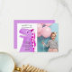 Tarjeta divertida y linda de agradecimiento de cumpleaños para la fiesta temática de dinosaurios de su hijo. Ilustración estilo caricatura de un dinosaurio rosa. El t rex lleva un pequeño sombrero de fiesta de princesa rosa. Sobre el t-rex dice "Gracias por pasar". En el cuerpo del dinosaurio hay un mensaje que agradece al invitado por venir y por los regalos. Agregue el nombre de su hijo en la parte inferior. El texto es fácilmente editable en línea. Puede personalizar aún más este producto agregando la foto de su hijo.