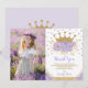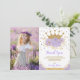 Este diseño presenta una brillante corona real en un falso purpurina de oro decorado con peonías de lavanda de color suave y rociadas de confeti. Personalizar la tarjeta de agradecimiento con su propia redacción y foto.