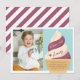 Diseñadas para coincidir con nuestras invitaciones de cumpleaños para niños con helado suave, estas tarjetas de agradecimiento lindas presentan un cono de helado suave de vainilla y bayas moradas con "gracias" y una firma en letra de estilo retro vintage. Personalice con una foto de la fiesta de cumpleaños y un mensaje preimpreso.