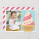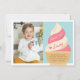 Diseñadas para coincidir con nuestras invitaciones de fiesta de cumpleaños para niños con helado suave, estas tarjetas de agradecimiento lindas presentan un cono de helado suave de fresa y vainilla con "gracias" y una firma en letra de estilo retro vintage lindo. Personalice con una foto de la fiesta de cumpleaños y un mensaje preimpreso.