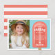 Diseñadas para coincidir con nuestras invitaciones de cumpleaños para niños con paletas, estas lindas tarjetas de agradecimiento planas presentan una paleta de coral brillante en la parte frontal, con las palabras "gracias por pasar el rato conmigo", su mensaje personalizado y una firma en letras retro blancas. Personalice con una foto de la fiesta para un toque final lindo.