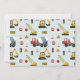 Esta linda y moderna tarjeta de agradecimiento de cumpleaños infantil con tema de construcción presenta un diseño de edificio azul con una excavadora, camión de concreto y señales de tráfico. Agregue la foto, el nombre y el mensaje de su hijo para un recuerdo personalizado — la forma perfecta de agradecer a los invitados después de una fiesta de cumpleaños de construcción para niños.