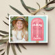 Diseñadas para coincidir con nuestras invitaciones de cumpleaños de niños de paleta, estas lindas tarjetas de agradecimiento planas presentan una paleta rosa brillante en la parte frontal, con las palabras "gracias por enfriar conmigo", su mensaje personalizado y una firma en letra retro blanca. Personalice con una foto de la fiesta para un toque final lindo.
