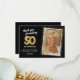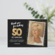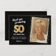 Tarjetas de agradecimiento de cumpleaños cincuenta elegantes con un fondo negro elegante que se puede cambiar a cualquier color, una foto de la cumpleañera / del cumpleañero, brillo dorado brillante, cincuenta globos de helio dorados y una plantilla de agradecimiento moderna que es fácil de personalizar.