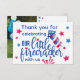 Agradece a tu familia y amigos de manera patriótica con esta adorable tarjeta de agradecimiento de cumpleaños número 1 de Little Firecracker 4 de julio! Con llamativos fuegos artificiales rojos, blancos y azules y espacio para una foto favorita, esta tarjeta personalizable es perfecta para celebrar el logro de tu pequeño. Personalízala fácilmente para crear un recuerdo memorable de tu celebración estival llena de estrellas!