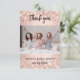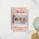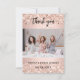 Una tarjeta de agradecimiento de despedida de soltera moderna con foto. Un fondo de oro rosa decorado con brillo falso y destellos. Personaliza y añade tu foto y nota de agradecimiento.
