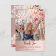 Una tarjeta de agradecimiento moderna para Despedida de Soltera con foto. Un fondo degradado de rosa oro decorado con rosas rosadas, flores y encaje. Personaliza y añade tu foto en la parte delantera y nota de agradecimiento en la parte trasera.