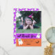 Rayas audaces de naranja y púrpura de otoño acentúan el diseño frontal de esta tarjeta plana de agradecimiento con la foto de un fantasma y murciélagos que dice "Gracias por hacer que mi cumpleaños sea boo-ti-ful". La parte delantera también presenta un par de murciélagos junto con un par de pequeños fantasmas lindos. La parte trasera presenta un patrón de fantasmas repetido sobre un fondo púrpura. Personalice con el nombre y su foto única. Todo el texto y los elementos se pueden mover y cambiar según sea necesario. Diseño de Holiday Hearts Designs (derechos reservados) con crédito de la foto de la plantilla a Sobima vía Pixabay.