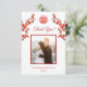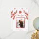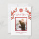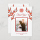 Lindas flores de cerezo rojas y un letrero de doble felicidad sobre un fondo blanco. Con un texto personalizado de agradecimiento de boda, su foto y sus nombres y fecha de boda.