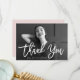 Esta moda y elegante tarjeta de agradecimiento por graduación incluye tu foto en la parte delantera, con escritura manuscrita moderna y un lugar para un mensaje personal en un color rosa de moda en la parte posterior.