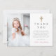 Tarjeta De Agradecimiento Foto de la Primera Comunión con Cruz Floral Modern