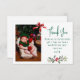 Esta linda tarjeta de agradecimiento es una excelente manera de agradecer a amigos y familiares por su compañía y regalos después del período de vacaciones. Estas tarjetas presentan un texto que dice 'GRACIAS' con tu foto favorita de Navidad, un dulce lazo rojo, un mensaje personal de gratitud o mantener la plantilla y luego quién es terminado con algunos acebos y bayas festivos. Todos los estilos de fuente de texto, tamaño y colores se pueden cambiar haciendo clic en el enlace personalizar más después de personalizar.