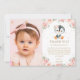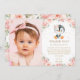 Tarjeta De Agradecimiento Foto de primer cumpleaños de Pingüino Floral Rosa