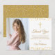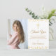 Con delicados corazones dorados y un elegante crucifijo dorado. Personaliza esta elegante tarjeta con tu foto y mensaje de agradecimiento de primera comunión en elegante letra dorada. Diseñado por Thisisnotme©