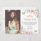 Tarjeta De Agradecimiento Foto de Quinceañera Rosa Sonrojado Floral Verde Sa