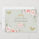Esta tarjeta de agradecimiento Quinceañera presenta delicadas flores rosadas de acuarela, follaje verde suave de salvia y mariposas verdes y doradas. Personalízala con tus detalles de manera fácil y rápida, simplemente presiona el botón de personalizar para reorganizar y dar formato al estilo y ubicación del texto. También es ideal para Sweet 16, cumpleaños 18, despedida de soltera, baby shower y muchas más ocasiones. (c) The Happy Cat Studio