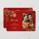 Esta elegante tarjeta de agradecimiento de los bodas chinos incluye una foto personalizado, flores de arte de la línea dorada y un símbolo de doble felicidad dorado sobre un fondo rojo brillante.