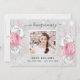 Una sencilla y elegante tarjeta de agradecimiento de simpatía con foto. Un fondo metálico plateado falso, un marco blanco, polvo de brillo falso, rosas rosadas y blancas, flores. Personaliza y añade tu nota de agradecimiento. Texto negro.