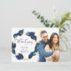 GRACIAS POR LA FOTO | Agrega tu foto - El moderno follaje frondoso de color índigo profundo rodea un marco dorado multifacético; los destellos brillan en las hojas y un reverso de un azul índigo profundo. Una combinación de caligrafía moderna con un diseño de texto minimalista y contemporáneo hace que sea una suite de boda de estilo tendencia. Diseño creado para TheBarefootBride™ por © WhimsicalArtwork™. Esto es parte de una colección de suites de papelería de boda con accesorios de boda a juego y también papelería para baby shower y otras ocasiones. No dude en hacernoslo saber si necesita ayuda.