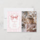 Captura y comparte la alegría del primer cumpleaños de tu bebé con nuestra adorable Tarjeta de Agradecimiento de Cumpleaños con Foto, Lazo Rosa y Estilo Coquette. Esta tarjeta personalizada es la forma perfecta de expresar gratitud a tus invitados mientras atesoras los preciosos recuerdos hechos durante la celebración.
