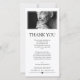 Minimalista y limpia tarjeta de agradecimiento por un servicio conmemorativo que presenta texto negro en un fondo blanco y claro, fuentes de buen gusto y una foto de tu ser querido.