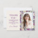Tarjeta De Agradecimiento Foto morada de cumpleaños con florido rosado de Ru