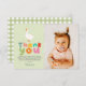 Esta linda y divertida tarjeta de agradecimiento para el segundo cumpleaños de niños presenta a dos gansos tontos con un sombrero de fiesta amarillo, y se puede personalizar con su propio mensaje y foto. ¡El diseño perfecto de granja para el colorido primer o segundo cumpleaños de su hijo!