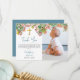 Un bonito diseño con flores de acuarela amarillas y blancas, cruz dorada y foto personalizado. Un fondo azul para el reverso de la tarjeta. Un diseño religioso ideal para la cristalización del bautismo de un niño. En esta colección de diseño se pueden ver la papelería y la decoración coincidentes.