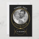 Este exquisito boda Gracias diseño de tarjeta fotográfica te dejará sin palabras! El fondo negro complementa perfectamente el lujoso marco dorado, que muestra tu fotografía y nombres de una manera que recuerda a un atragantador de alambre con dos círculos superpuestos.