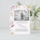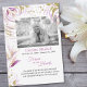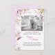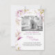 Tarjeta de agradecimiento por duelo con foto personalizado y mensaje de agradecimiento. El diseño presenta un delicado follaje en rosa y oro con "para siempre en nuestros corazones", escrito en elegante tipografía de escritura. La plantilla de fotos está configurada para que agregue una imagen, que se muestra en formato horizontal en blanco y negro. (Si no desea que su imagen se convierta en blanco y negro, haga clic en "personalizar más adelante -> filtros -> sin filtro".) También puede agregar el nombre y los años de vida de su ser querido. Un diseño elegante que sus amigos y familiares pueden conservar como tarjeta conmemorativa.