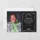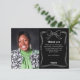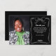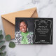 Una tarjeta de fotos de agradecimiento de cumpleaños. Un fondo negro. Decorada con un arco dibujado a mano y un marco blancos. Personaliza y agrega tu foto y nota de agradecimiento.