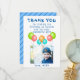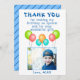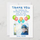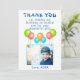 Tarjeta de agradecimiento de cumpleaños de niños con globos. Tarjeta de cumpleaños de globos de agradecimiento para la fiesta de cumpleaños de los niños. Este diseño viene con globos en colores rojo, azul, rosa y verde. Personaliza la tarjeta con el nombre de tu hijo, mensaje de agradecimiento y foto.