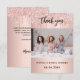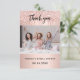Una tarjeta de agradecimiento de Despedida de Soltera moderna para foto. Un fondo de rosa dorado decorado con gotas de purpurina falsa, efecto de pintura que gotea. Personaliza y agrega tu foto y nota de agradecimiento.