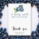 Carta de invitación a la ducha de bebé con ilustracion acuático de arándanos. El texto dice "un bebé dulce de berry está en camino". Elementos coincidentes disponibles.