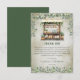 Hermoso diseño de agradecimiento de Shower nupcial de bosque y verde salvia eucalipto y mercado de agricultores boutique - parte de la colección "Fresco de la mercado". El fondo frontal rústico envejecido se combina con el puesto de madera cargado de vegetación y el eucalipto circundante colgante que recuerda a un mercado italiano o rural al aire libre. La parte posterior presenta un simple color sólido verde bosque.