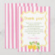 Tarjeta De Agradecimiento Freshly Graduated Lemon Pink Stripes Graduation
