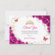 Fuchsia pink gold and white floral Quinceanera thank you card. Features, script font, gold butterflies, watercolor roses and tiara. Perfect for an elegant princess style glam celebration. Personalize with your own details.