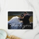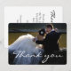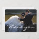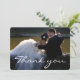 Tarjeta de agradecimiento de foto de boda con fuente de escritura blanca elegante. Personalízala con tu tarjeta de boda favorita. Contiene un mensaje de agradecimiento en la parte posterior de la tarjeta que puedes cambiar a tu gusto.