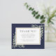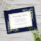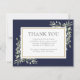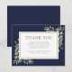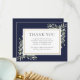 Una elegante tarjeta conmemorativa funeral que presenta follaje verde botánico acuarela sobre un fondo azul marino. Puedes personalizar con tu propio mensaje de agradecimiento. Diseñado por Thisisnotme©
