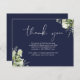 An elegant navy blue, funeral memorial card featuring watercolor botanical garden greenery foliage. You can personalize with your own thank you message. Designed by Thisisnotme©