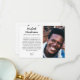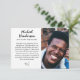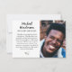 Agradezca personalmente a su familia y amigos que lo han apoyado durante su duelo, con estas modernas tarjetas de agradecimiento y a su debido tiempo. Con texto que dice 'en memoria de', una foto y el nombre de su ser querido, fechas importantes y un sentido homenaje. El otro lado de la tarjeta tiene un mensaje de agradecimiento y el nombre de la familia, todos los aspectos de la tarjeta se personalizan fácilmente.