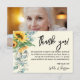 Tarjeta de nota de agradecimiento funeral de eucalipto girasol acuarela. Agregue su foto y fecha favoritas.
