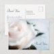Tarjeta postal de agradecimiento elegante y hermosa con una foto de rosa suave de color rosa. Mensaje de agradecimiento impreso en la parte posterior junto con una plantilla de texto para las direcciones.