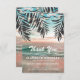 Tarjeta de agradecimiento para el funeral de simpatía que incluye puesta de sol en la playa, hojas de palma, luces de cuerda y una simple nota de gratitud sentida que es fácil de personalizar.
