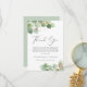 Un elegante funeral y tarjeta de agradecimiento conmemorativo. Este diseño presenta acuarelas de verde eucalipto verde salado con acentos dorados, "Gracias" en un guión elegante de bonito y su mensaje de agradecimiento y el nombre de su ser querido en una tipografía moderna y sencilla.