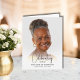 A simple folded thank you card features a your loved one's photo on the front with their name and birth-death dates. The inside features a sample message on the right side you can use or change to your own words and room to add any additional information on the left side. Beautiful for custom thank you notes for your celebration of life, funeral or memorial. MATCHING items in our collection.