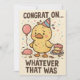 Celebrate the weirdest of wins with this absurdly funny greeting card featuring a confused duck in a party mess. Whether it's graduation, promotion, or... something, this card delivers awkward congrats with charm and chaos. Perfect for offbeat milestones, adult humor, or quirky friends who’ll totally get it.