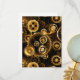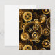 Sin soldadura, metalizado, latón, engranajes dorados sobre un fondo oscuro y oxidado. Estilo Steampunk.