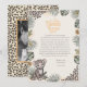 The back includes a custom photo area, framed by a matching yellow rectangle over a coordinating hand-drawn leopard print background, creating a stylish and memorable finish. Perfect for gender neutral thank you notes, safari-themed showers, and jungle celebrations, and a beautiful keepsake for your guests.