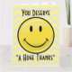 Una tarjeta de felicitación extra grande con una cara sonriente gigante en la parte frontal. En la parte frontal, posterior e interior hay un patrón de chevron. También hay un espacio para tus propias palabras en la parte frontal e interior, para hacer la tarjeta adecuada para cualquier ocasión.